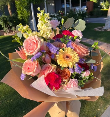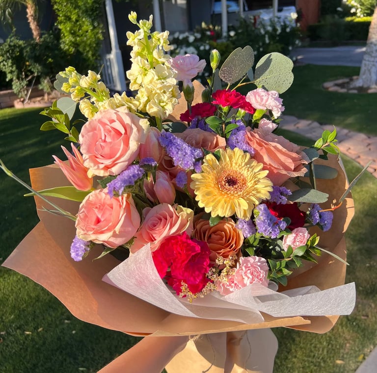 Our flowers are sourced daily from trusted growers and suppliers to ensure the highest quality. Each arrangement is made to order, so your bouquet is prepared as close to delivery or pickup time as possible.